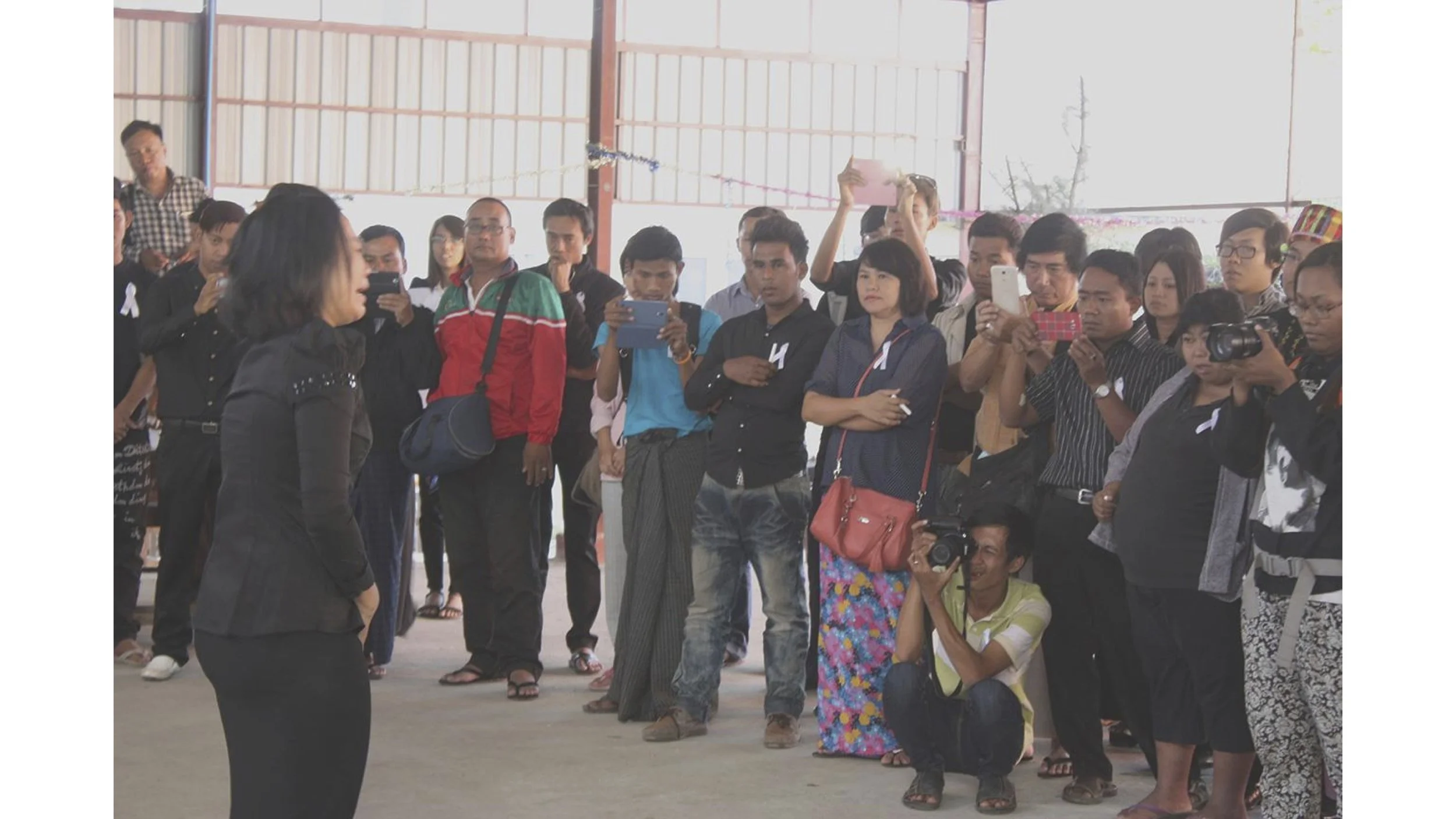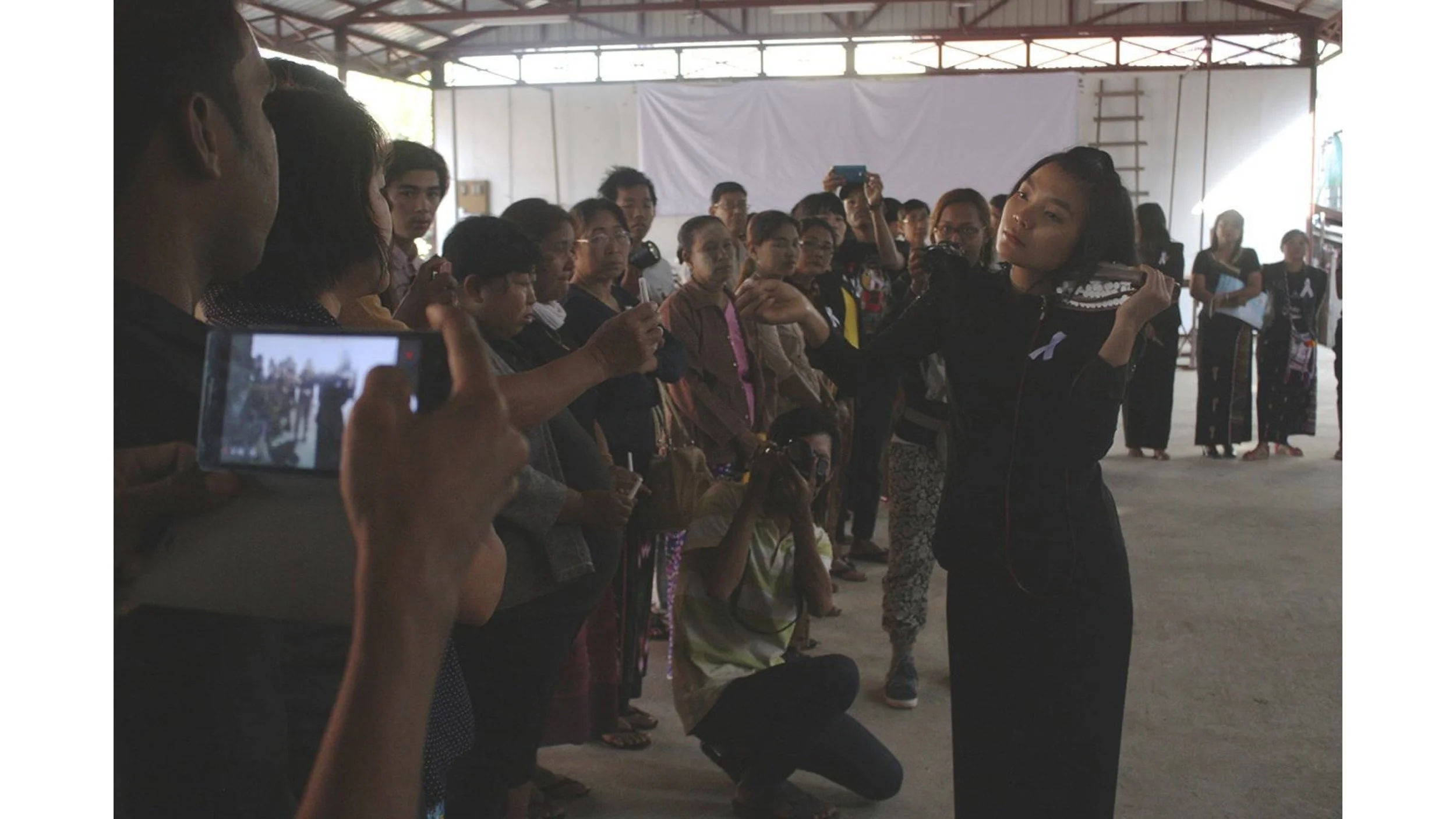 On Jan. 19, 2015, two volunteer teachers, Maran Lu Ra and Tangbau Hkawn Nan Tsin, who were both 20 years old and worked with the Kachin Baptist Convention (KBC), were raped and killed in their hut. At the time of the incident, soldiers from the Myanmar Army's Infantry Battalion (IB) 503 were present in the small village, and 28 soldiers were suspected of involvement in the double murder. The Women's League of Burma's report, 'If They Had Hope, They Would Speak,' documented 118 cases of sexual violence against ethnic women by the Burmese military within four years (2010-2014). This performance was dedicated to the two victims of reported/unreported and documented/undocumented sexual abuses in armed conflict areas in Myanmar. One month later, at a commemoration event for two teachers, I performed this piece in Mandalay in 2015. developed a follow-up group performance workshop discussing the issue with the audience participants.