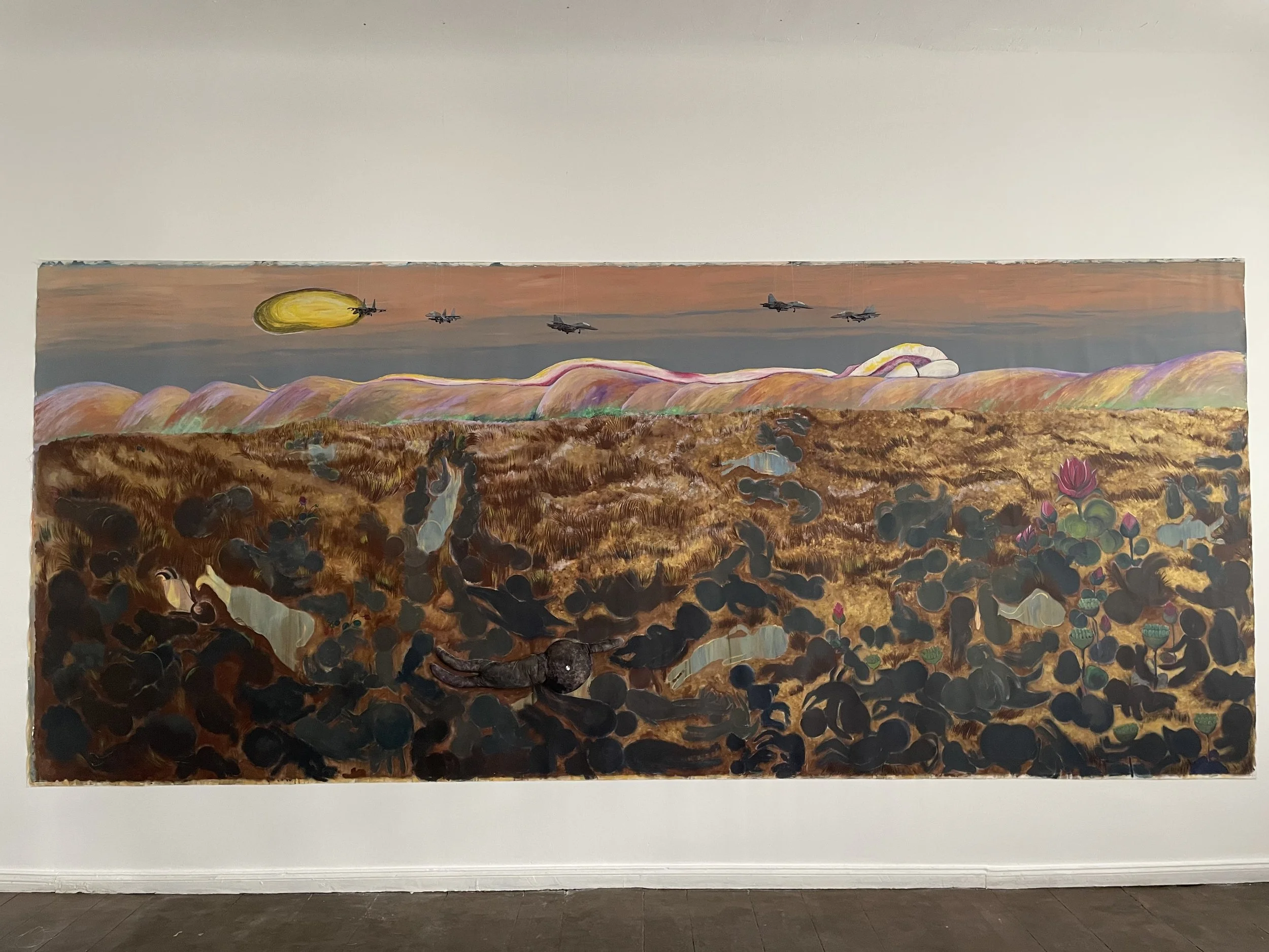 This mixed media painting series probes the profound visual traumas the artist has faced due to Myanmar's ongoing political turmoil. Since the military coup in 2021, relentless airstrikes have ravaged villages, schools, and sanctuaries, systematically obliterating lives and landscapes.